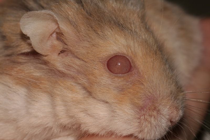 Hamsters, vooral bij jonge hamsters, komt het wel eens voor dat het oogje ontstoken is. Beste is om met een schoon doekje en lauw water elke dag het oogje goed schoon te maken.Gaat de ontsteking niet binnen aantal dagen over, ga dan met de hamster naar een dierenarts. Hij kan dan een antibiotica zalfje voorschrijven.